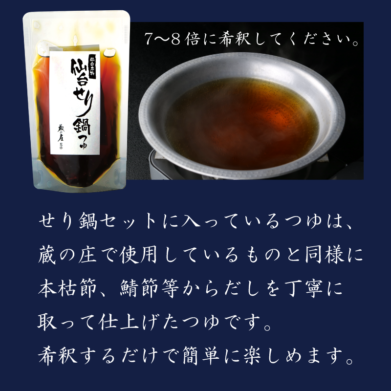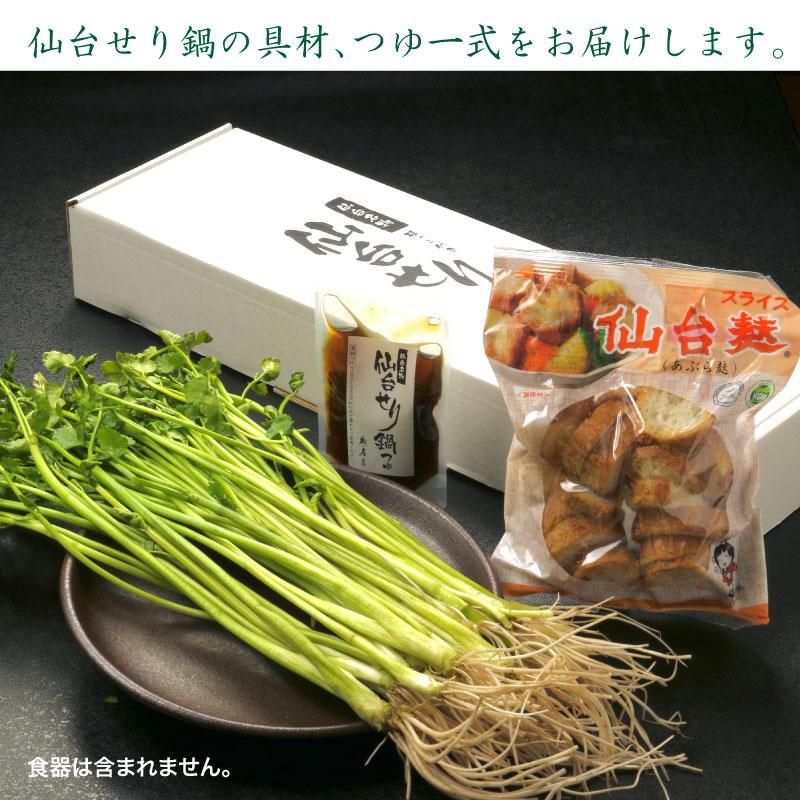 ■商品の内容 ・仙台せり[300g] 原産地:宮城県 賞味期限:出荷日+3日 ・仙台せり鍋つゆ[100g×1パック] 製造地:宮城県 賞味期限:製造日から6ヶ月 ・あぶら麩(仙台麩)[40g] 製造地:宮城県 賞味期限:製造日から90日 ■原材料・成分 【原材料】せり(宮城県産)、つゆ(希釈タイプ)(しょうゆ(国内製造)、みりん、砂糖、米発酵調味料、混合かれぶし、削り節(削り粉)(そうだがつお、さば、かつお)/調味料(アミノ酸)アルコール)、仙台麩(あぶら麩)(小麦粉、グルテン、植物油(大豆油))(一部に小麦・大豆・さばを含む) 【内容量】せり300g、つゆ(希釈タイプ)100ml、仙台麩(あぶら麩)40g 【栄養成分表示】エネルギー743.7kcal タンパク質29.5g 脂質40.2g 炭水化物62.7g 食塩相当量9.72g (100gあたりの推定値) ■注意事項/その他 ※収穫状況により、発送予定から前後する場合がございます。 ※年末年始や中元お歳暮時期等の繁忙時期は、発送までにお時間をいただく場合がございます。 ※生鮮物ですので期限は目安となります。状態をよくご確認の上、到着後はお早めにお召し上がり下さい。 ※記載の期限は、発送日基準の目安となります。